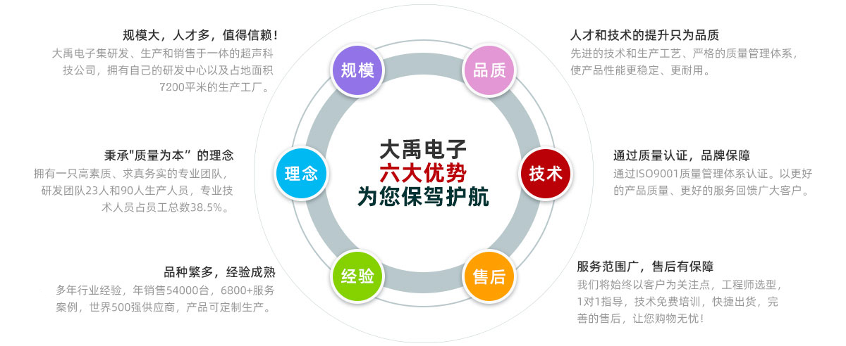 福州大禹電子科技有限公司成立于2008年自創(chuàng)辦以來(lái),專注超聲產(chǎn)品的研發(fā)和產(chǎn)業(yè)化,始終堅(jiān)持技術(shù)創(chuàng)新是企業(yè)發(fā)展動(dòng)力的理念,運(yùn)用最基礎(chǔ)的物理聲學(xué)原理,攻克了一系列卡脖子難題,成功打破了國(guó)外壟斷,把超聲技術(shù)運(yùn)用到了工控、水利、市政、環(huán)保、醫(yī)療,海洋等各個(gè)領(lǐng)域。積累了多項(xiàng)發(fā)明專利和幾十項(xiàng)實(shí)用新型專利、軟件著作權(quán)、外觀專利;獲得了“科技創(chuàng)新小巨人”、“專精特新”、 “國(guó)家級(jí)高新技術(shù)企業(yè)”等榮譽(yù),掌握了產(chǎn)品硬件、軟件、材料和工藝的核心技術(shù),通過(guò)ISO9001體系認(rèn)證和環(huán)境管理體系認(rèn)證。主要產(chǎn)品有物位計(jì)、明渠/多普勒流量計(jì)、空氣/...
